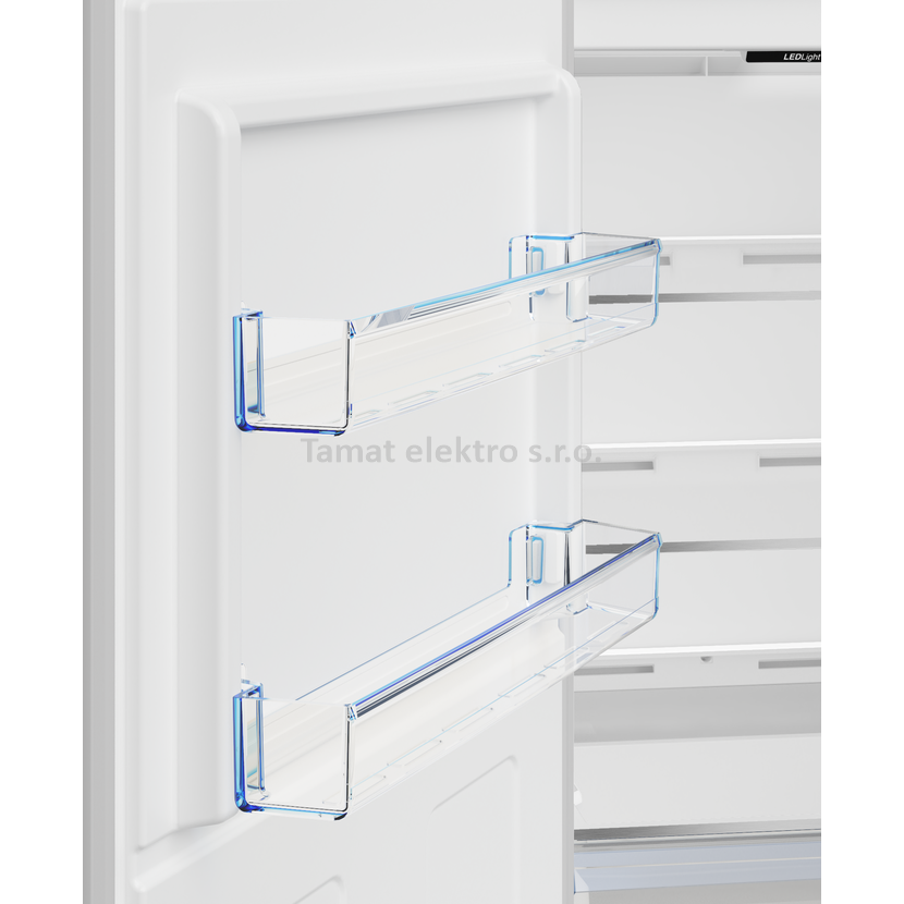 Pokud zůstanou dveře lednice déle otevřené, spustí se zvukový signál až do jejich zavření. To omezuje zvýšení vnitřní teploty i spotřeby.