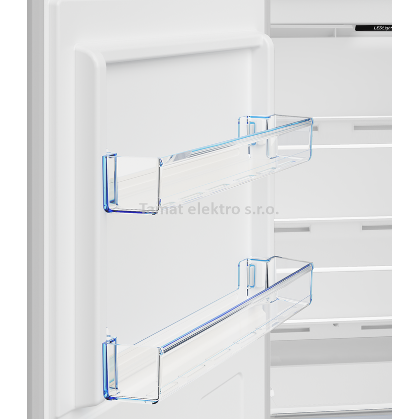 Pokud zůstanou dveře lednice déle otevřené, spustí se zvukový signál až do jejich zavření. To omezuje zvýšení vnitřní teploty i spotřeby.
