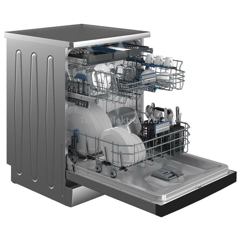 Volne stojící myčka v Energetické třídě B. Kapacita 16 sad nádobí, velmi tichý chod - hlučnost pouze 43 dB. Příborová zásuvka, 3 polohové nastavení prostředního koše, vnitřní LED osvětlení…
