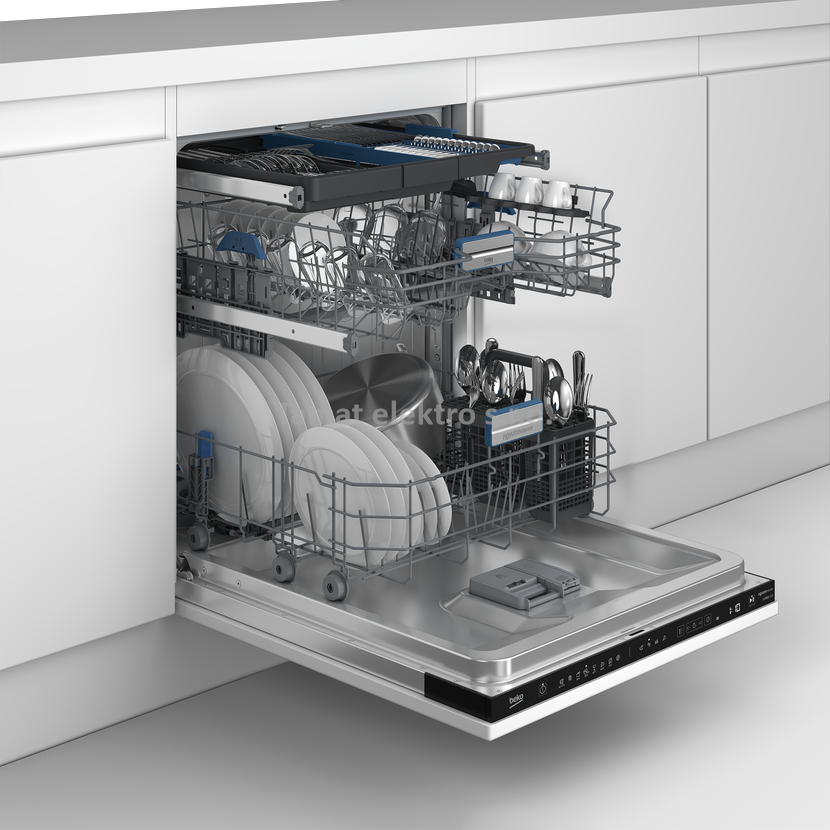 Vestavná, plně integrovaná myčka nádobí v energetické třídě B. SušeníPlus – automatické pootevření dveří na konci programu. RychléMytí – možnost zkrácení programů. MultiClack - ystém nastavení výšky…