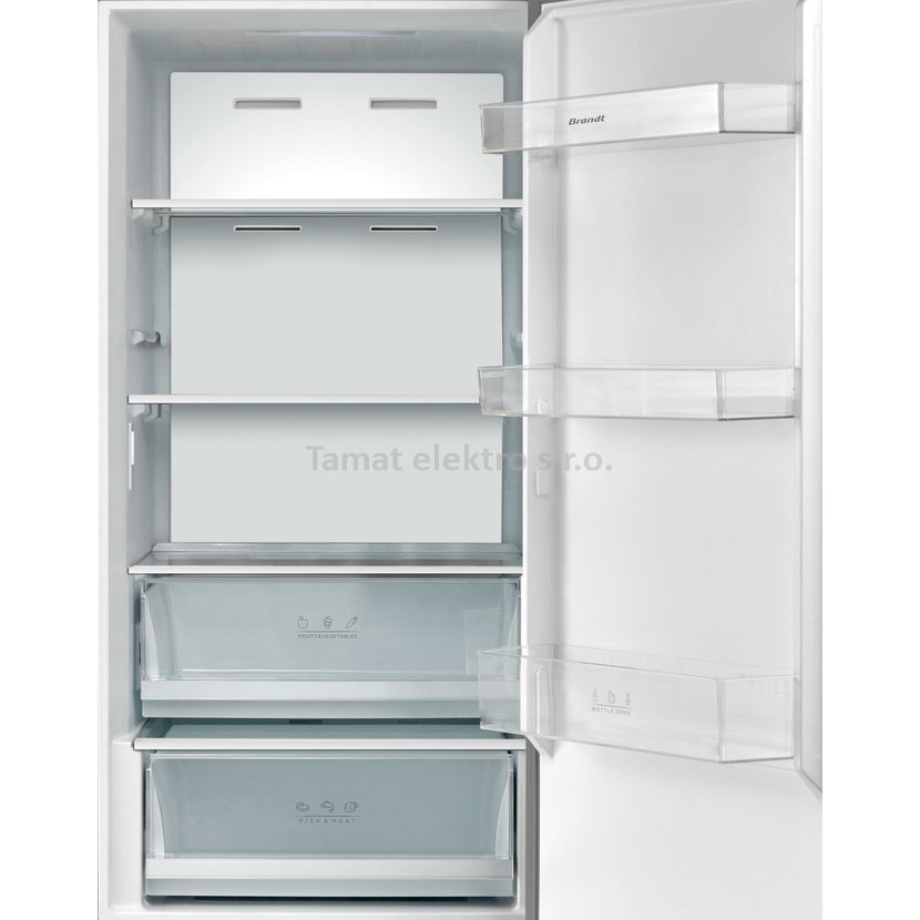S celkovým objemem 378 litrů, z toho 256 litrů v chladicí části a 122 litrů v mrazicí části, nabízí Brandt BFC2069CW dostatek prostoru pro veškeré vaše potraviny. Chladicí část obsahuje Fresh zónu pro čerstvé potraviny, tři police z bezpečnostního skla a dvě zásuvky na ovoce a zeleninu. Mrazicí část je vybavena třemi objemnými šuplíky a formou na ledové kostky.