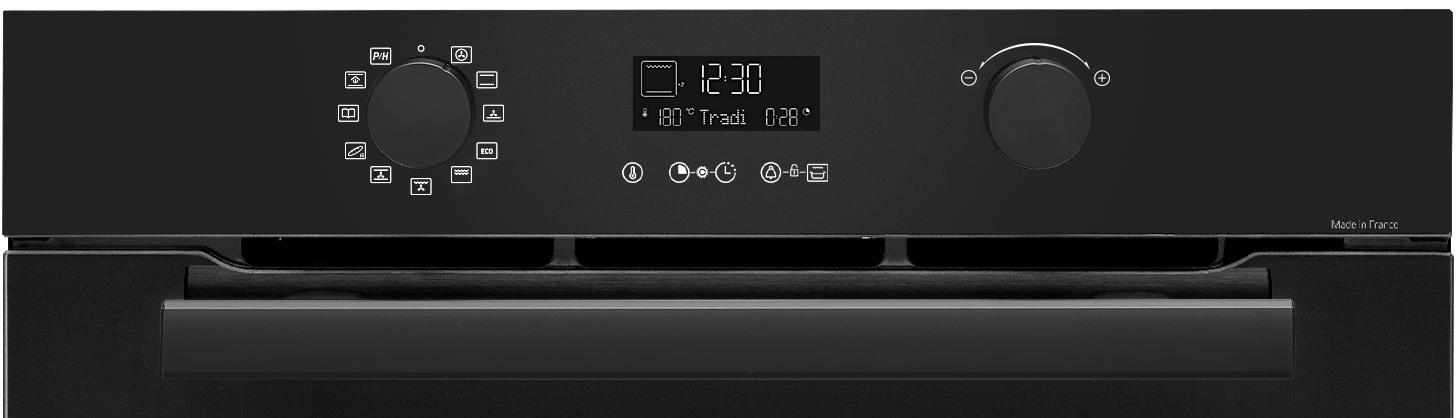 Multifunkční pyrolytická trouba v černé barvě v energetické třídě A+. Objem trouby 73 litrů,dotykový bílý LCD displej s 2 otočnými voliči, 10 funkcí trouby + 12 automatických programů. Variabilní gril se 4 stupni výkonu, pyrolitické a hydrolitické čištění. Tepelná izolace Perfect Insulation, Auto Stop. Cold Door - chladná dvířka trouby.
