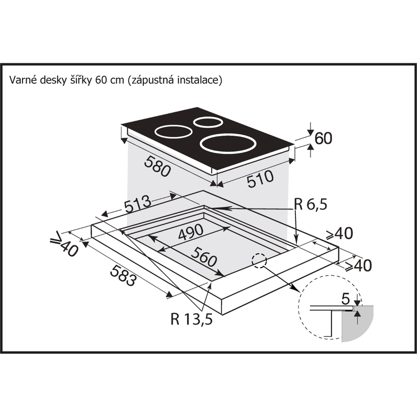Indukční varná deska 60 cm široká, černé sklo a rovné hrany, možnost zapuštění do pracovní desky, dotykové ovládání Intellect Easy, 4 varné zóny, 4x Booster, 4x časovač 1-99 min., Clean Lock - dočasné…