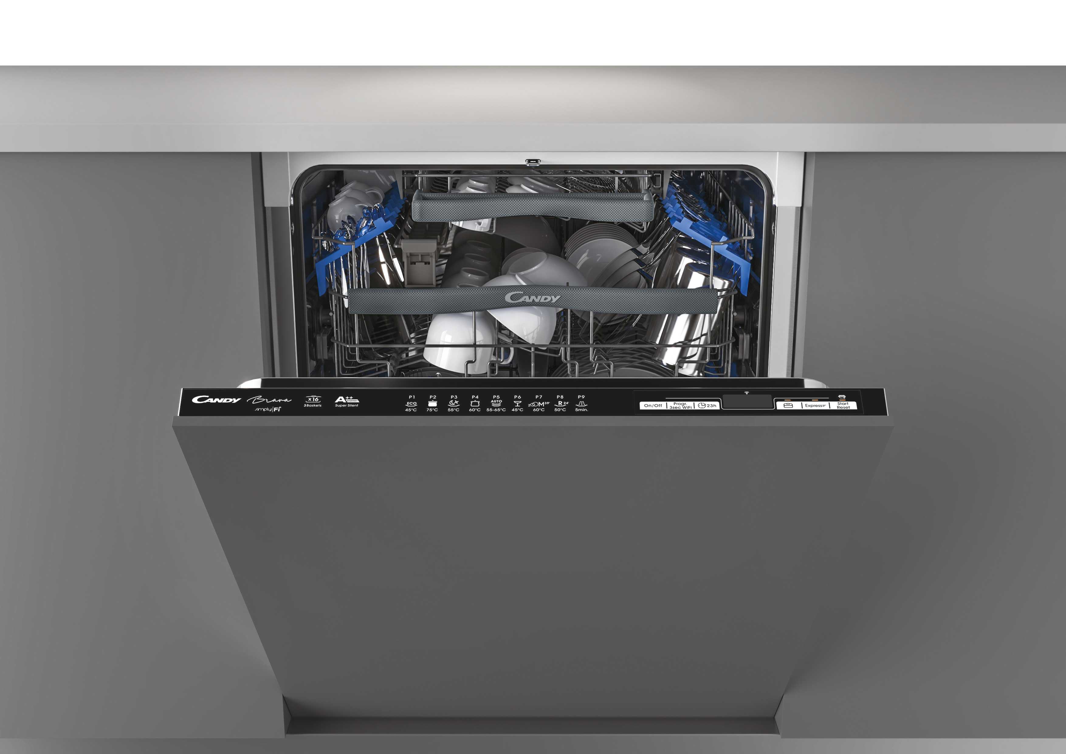 3 koše: možnost polohování horního koše, sklopitelné držáky šálků a talířů, Maxi Plates - mytí talířů o 34cm