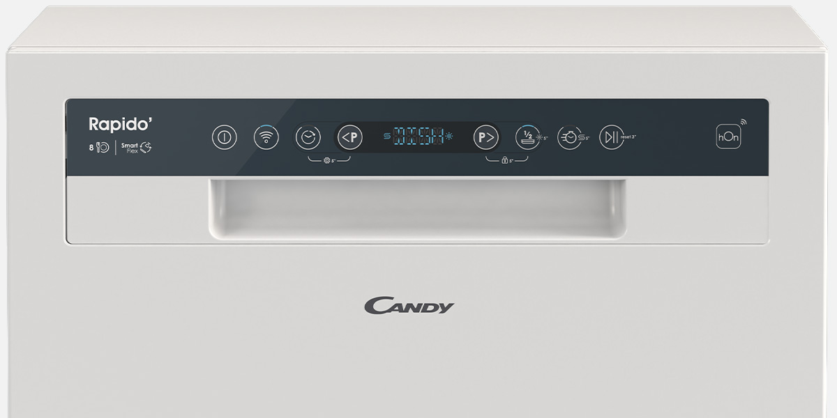 Díky svým inteligentním senzorům je nová Candy Rapido' schopna přizpůsobit trvání a teplotu cyklu podle různých konfigurací a intenzitě znečištění.
