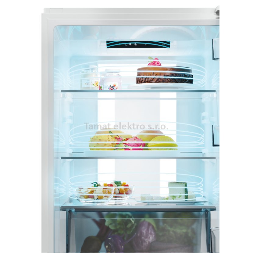 Rovnoměrně rozprostřené LED světlo osvětluje celou zadní stěnu uvnitř chladničky, což umožňuje plnou viditelnost v každém rohu, i když je chladnička plně zásobená. To vám také pomůže snáze a bez námahy najít jídlo a ztrácet tak méně času hledáním toho, co potřebujete. Dokonalá kombinace chytrosti a stylu.