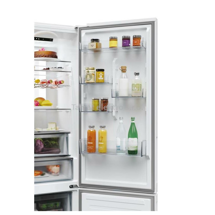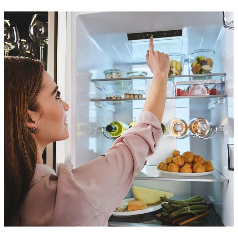 Rovnoměrně rozprostřené LED světlo osvětluje celou zadní stěnu uvnitř chladničky, což umožňuje plnou viditelnost v každém rohu, i když je chladnička plně zásobená. To vám také pomůže snáze a bez námahy najít jídlo a ztrácet tak méně času hledáním toho, co potřebujete. Dokonalá kombinace chytrosti a stylu.