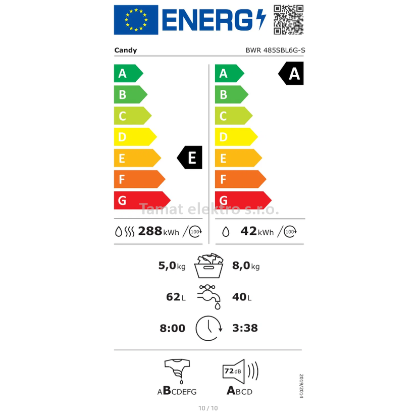 Tato pračka Candy boří bariéry nových energetických štítků: díky technickým vylepšením může zlepšit energetickou třídu o 10 %. To znamená, že dokáže snížit spotřebu o nejméně 55 % ve srovnání se spotřebičem třídy G, což pomáhá šetřit energii, peníze a respektuje životní prostředí. Další velký krok k udržitelnějšímu světu, od Candy.