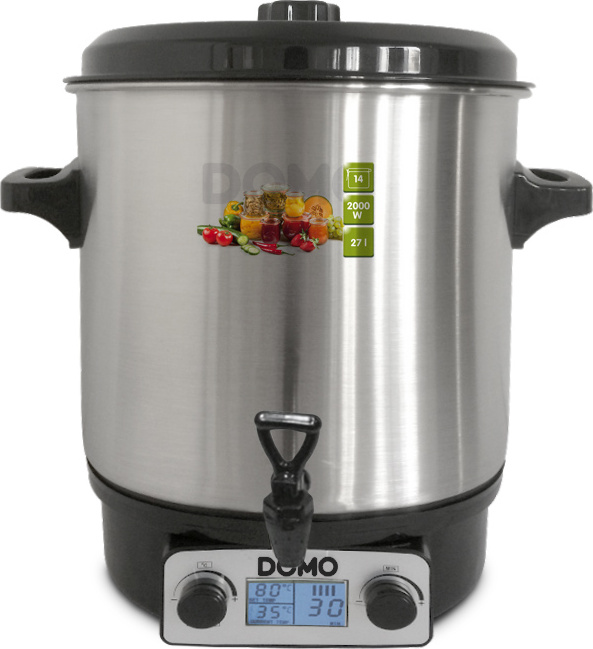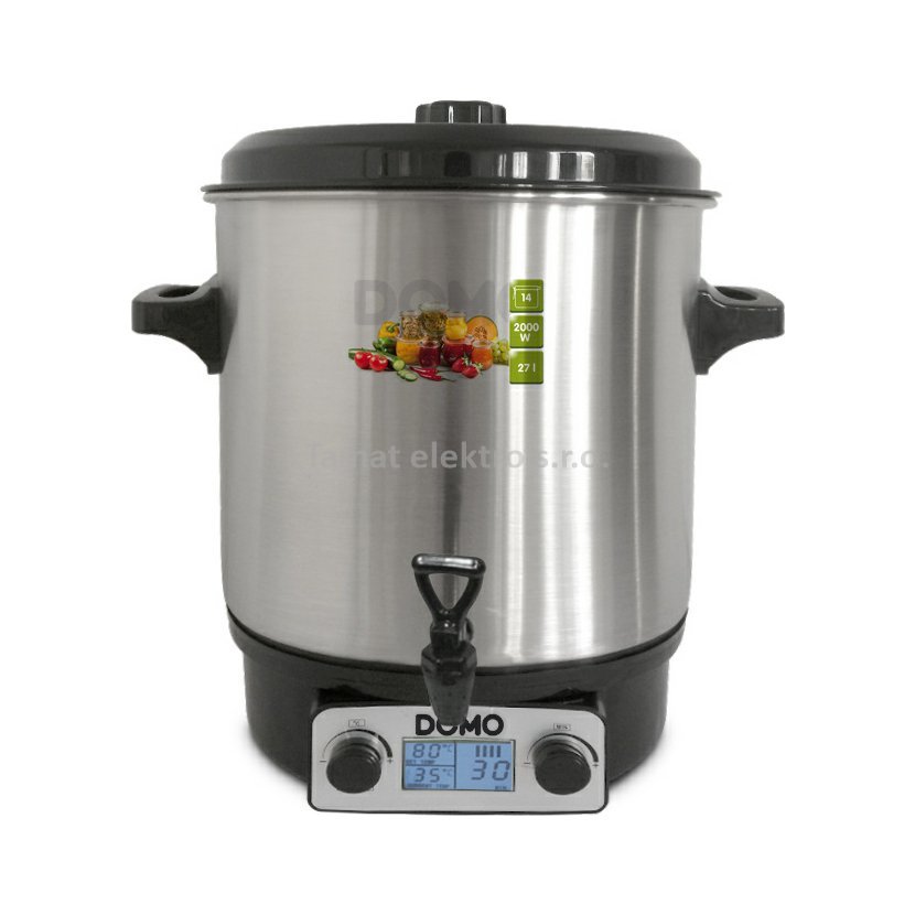 Do nádobyo objemu 27 litrů vložíte 14-18 zavařovacích sklenic, nastavíte teplotu a po jejím dosažení se zavařování automaticky spustí na vámi nastavenou dobu. Termostat bude požadovanou teplotu stále udržovat. Přehledný apodsvícený LCD displejvás bude informovat o všem, co je potřeba při zavařování sledovat a kontrolovat. Rukojeti hrnce jsou tepelně izolovány a tím zajišťují snadnou a pohodlnou manipulaci. Samozřejmostí jeochrana proti přehřátí a vyvaření vody.