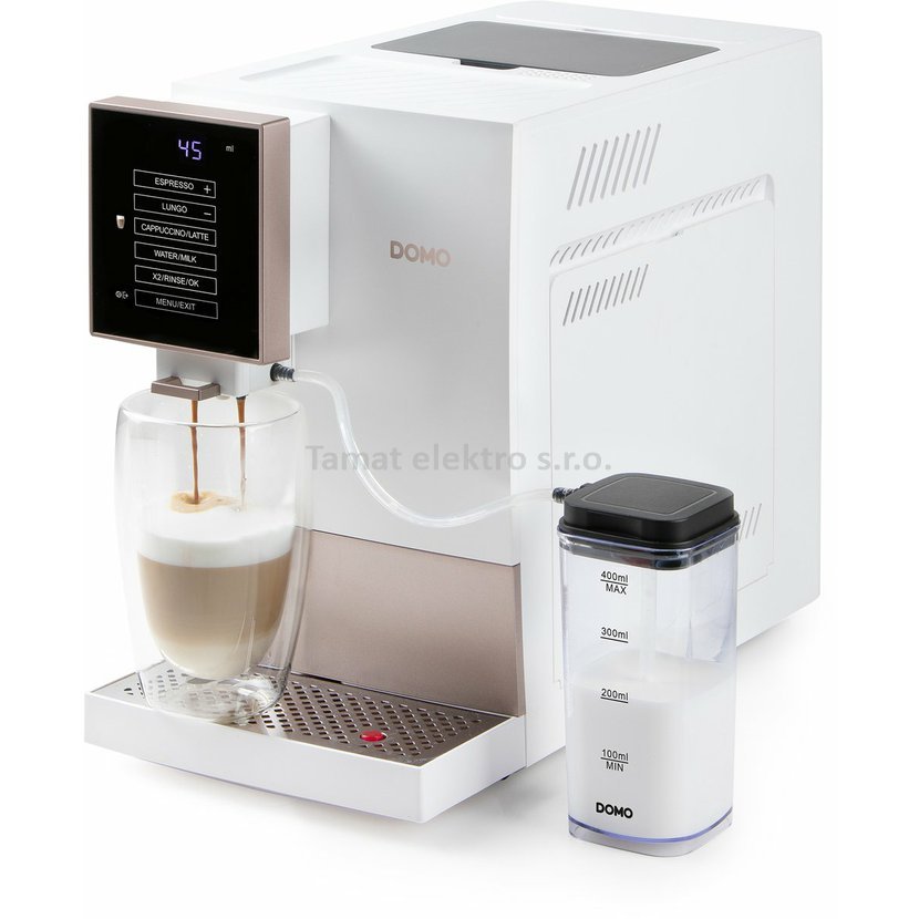 Kompaktní plně automatický espresso kávovar s integrovaným napěňovačem mléka a mlýnkem na kávu De luxe. LED displej a dotykové ovládání. Plně nastavitelný. Parní tlak 19 Barů.