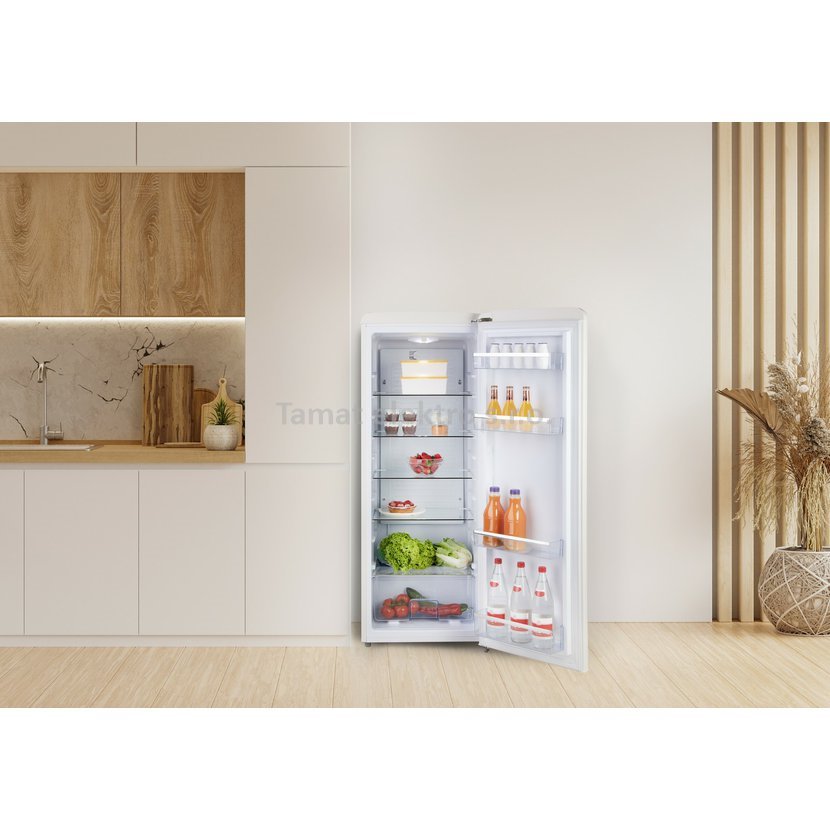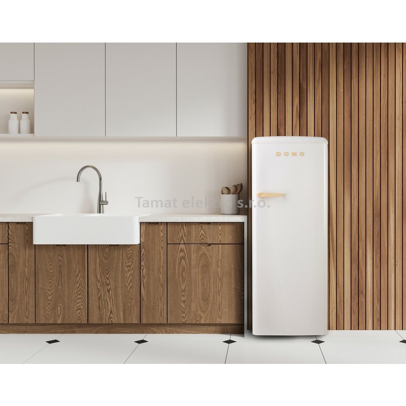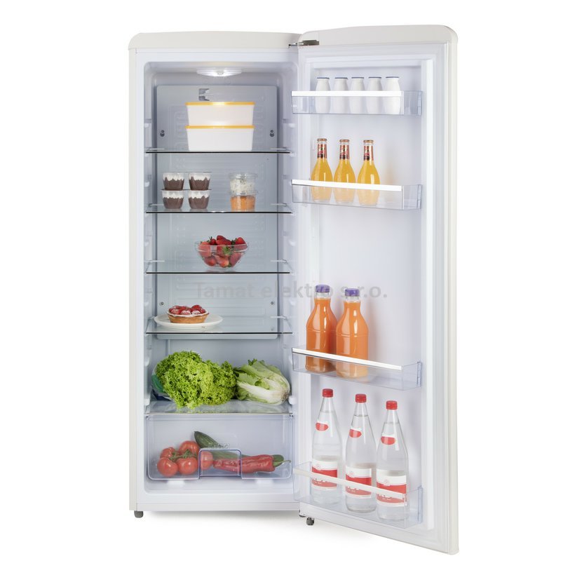 Jednodvéřová chladnička s mrazáčkem v energetické třídě D, v retro designu a zelenkavé barvě. Celkový objem 218 litrů (194/24). Výrazná kovová madla s chromovou úpravou. Hlučnost 39dB, automatické…