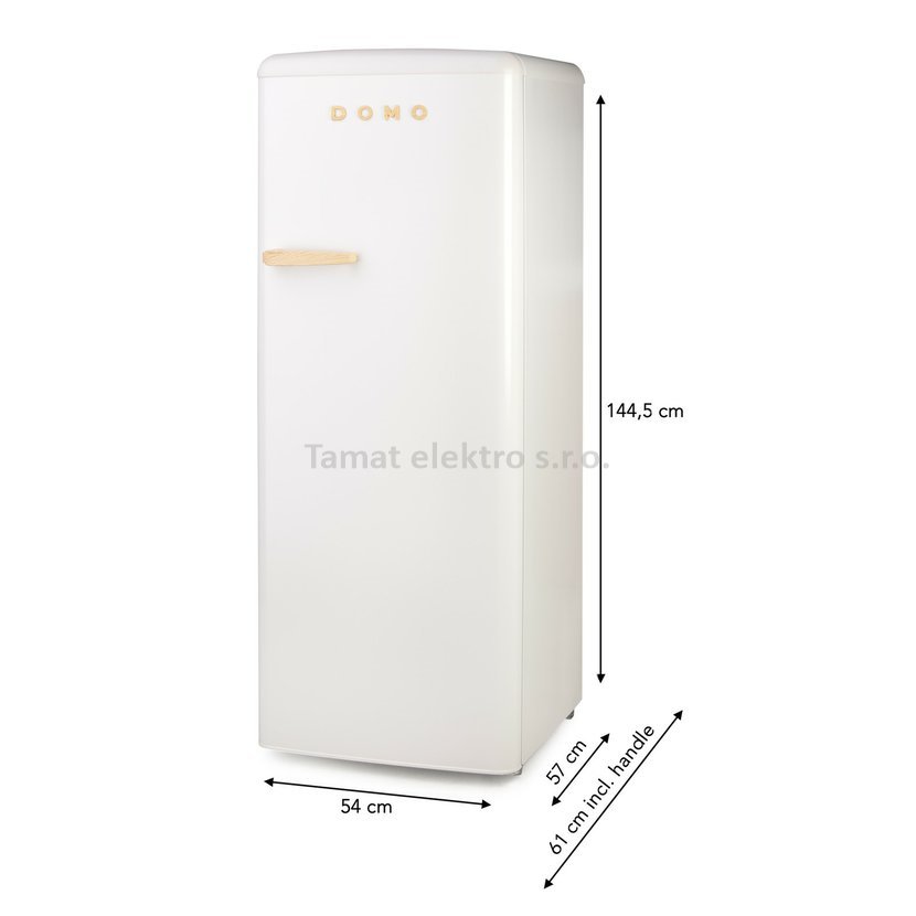 Tato elegantní retro chladnička v bílé barvě a s rukojetí ve vzhledu dřeva kombinuje design s funkčností.