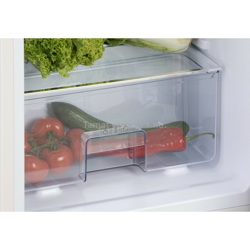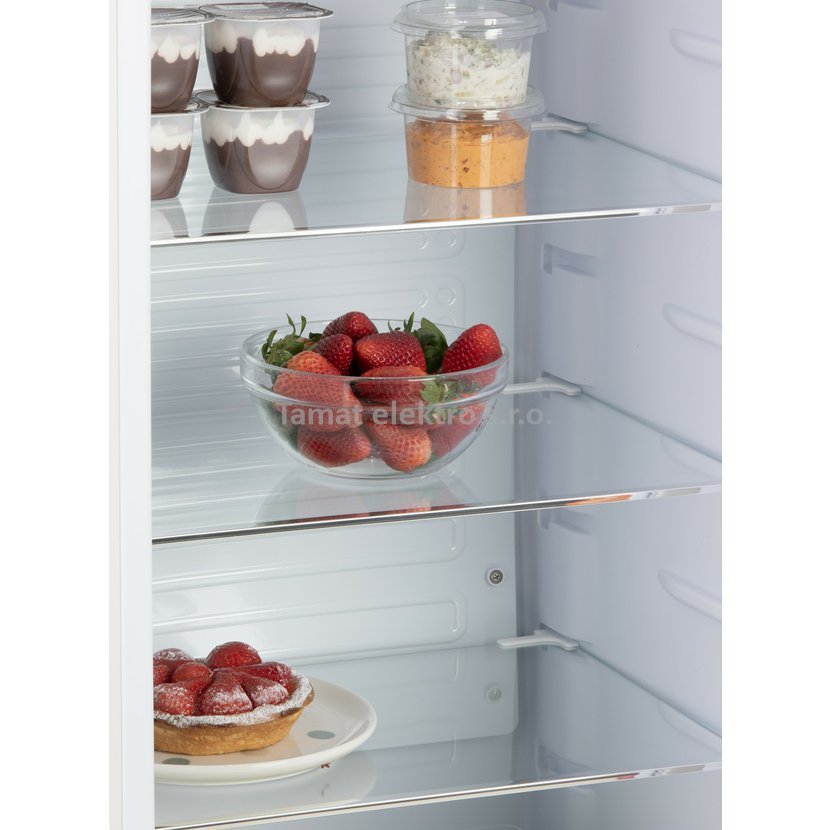 Praktické uspořádání s pěti skleněnými policemi, zásuvkou na zeleninu a čtyřmi dveřními policemi navíc zajišťuje maximální pohodlí.