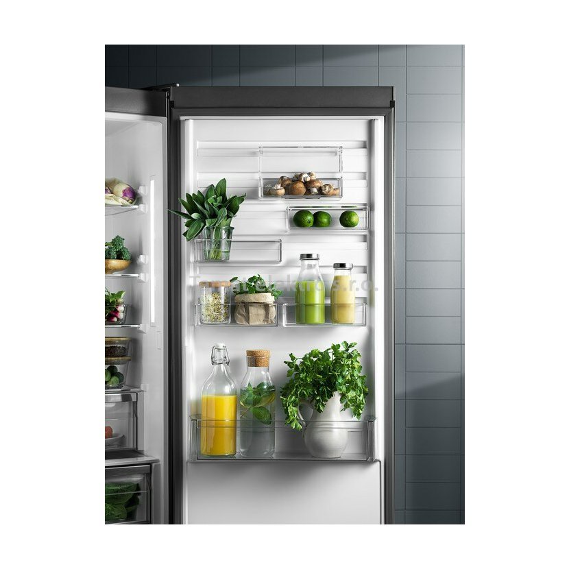 Vestavná kombinovaná chladnička Electrolux série 600 Flex NoFrost. Automatické rozmrazování mrazící přihrádky - TwinTech NoFrost. Stabilní teplota díky technologii DynamicAir. Flexibilní ukládání s přihrádkami CustomFlex. Funkce Fast Freeze. Maximální úložná flexibilita s MultiSpace. Objem 274(213/61), výška 188,4 cm, hlučnost 36dB. Určena k vestavbě se spřaženými dveřmi.