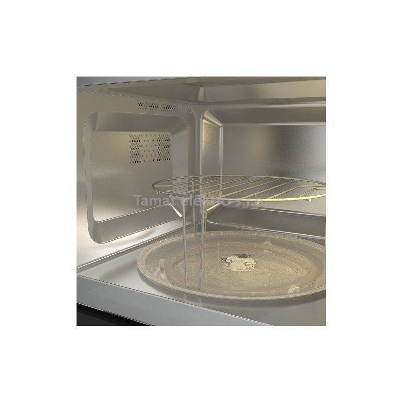 Mikrovlnná trouba s grilem určená pro vestavbu. Mikrovlnný výkon 900 W, výkon grilu 1000 W. Automatické rozmrazovací programy podle váhy, LED displej, dotykové ovládání pro volbu výkonu.