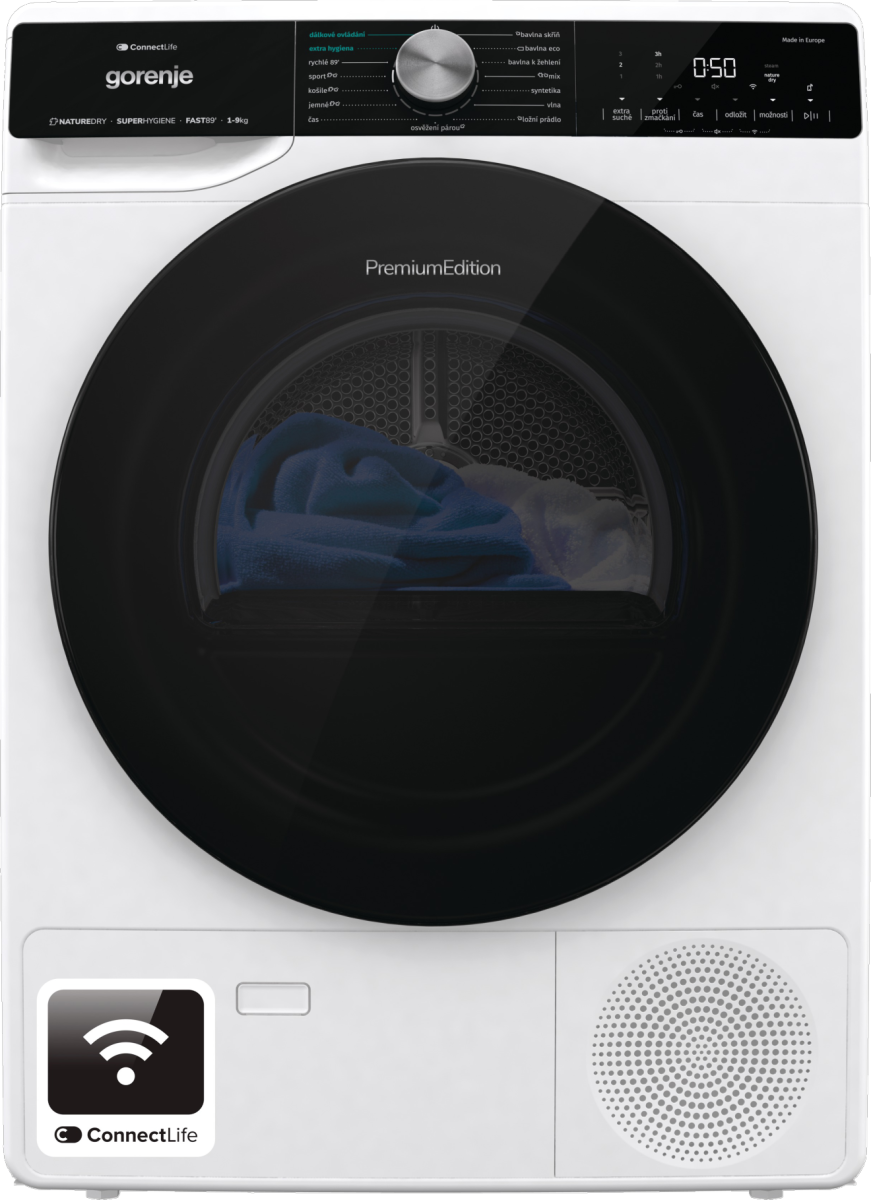 Sušičky Gorenje jsou vybaveny systémem Anti-Crease, který snižuje pomačkání prádla. Pohyb bubnu a speciální 3D tvar žeber zabraňují zamotání nebo svazování povlečení nebo oděvů, což vede ke zvýšení účinnosti sušení. Na konci sušícího cyklu je prádlo po dobu deseti minut ochlazováno, aby se ještě více snížilo riziko pomačkání. A i když sušičku nevyložíte okamžitě, prádlo se nepomačká díky automatickému pravidelnému převrácení prádla po dobu minimálně jedné hodiny po skončení cyklu.