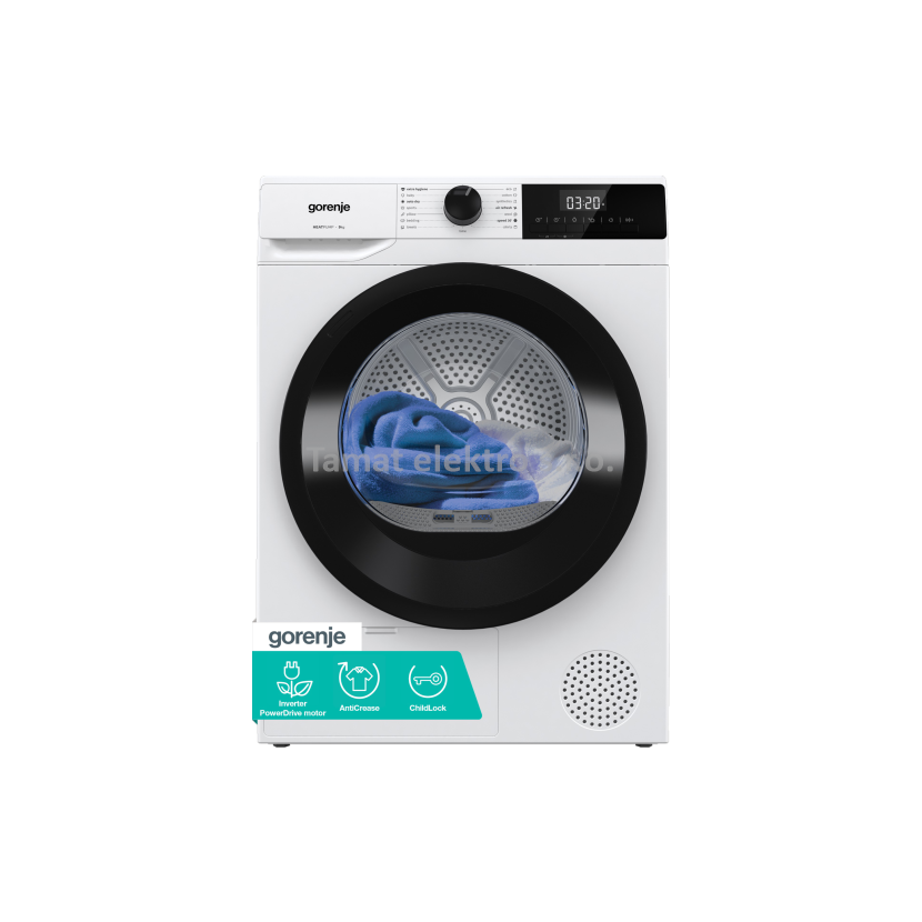 Volně stojící sušička prádla s tepelným čerpadlem v energetické třídě C na 8kg prádla. Hloubka 55cm. Anticrease - systém proti mačkání prádla. Program Rychlý 30‘ - prádlo připravené k nošení za 30…