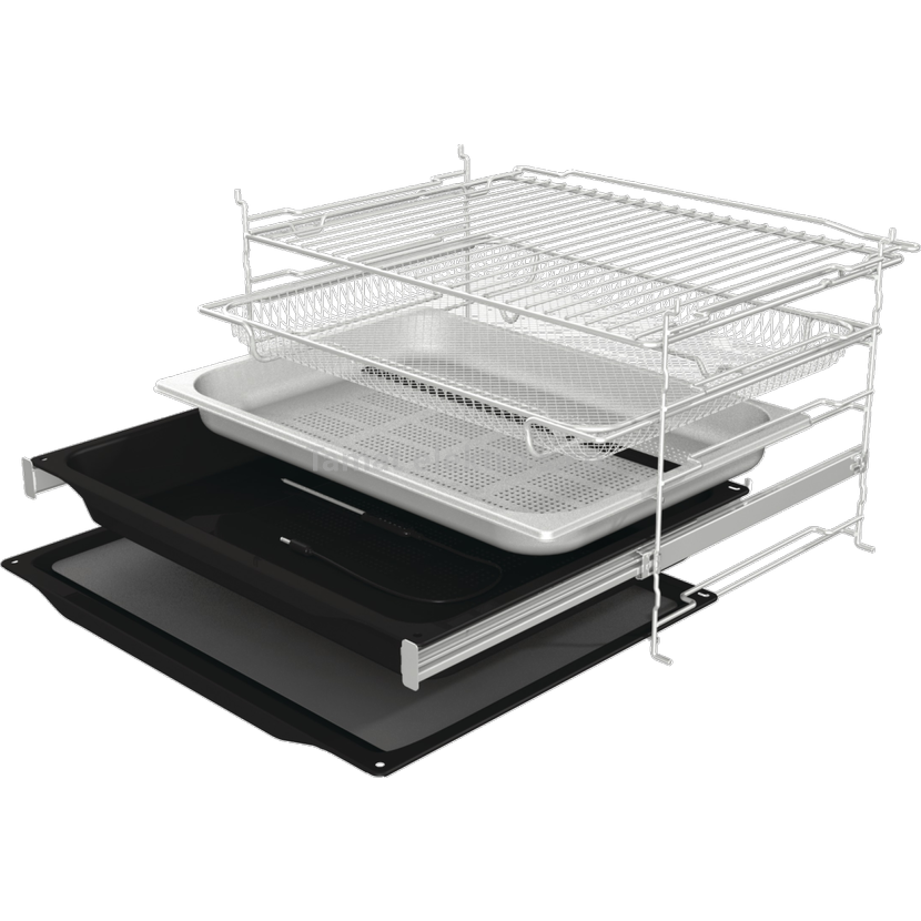 Nyní si můžete vychutnat lahodné, křupavé smažené jídlo bez kalorií navíc. Tato metoda mimořádně intenzivního pečení horkým vzduchem nevyžaduje žádný tuk, aby se zajistila dokonale lahodná křupavá zlatá kůrka.V kombinaci se speciálním perforovaným plechem na pečení (v závislosti na modelu), který dokonale propeče jídlo ze všech stran, dosáhnete ještě lepší výsledky.Vhodné pro pečení malých kousků masa, ryb, zeleniny nebo mražených výrobků, jako jsou hranolky či kuřecí nugetky.