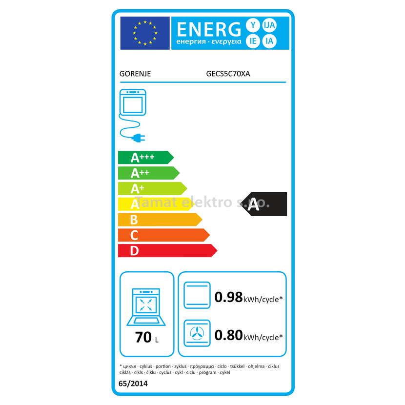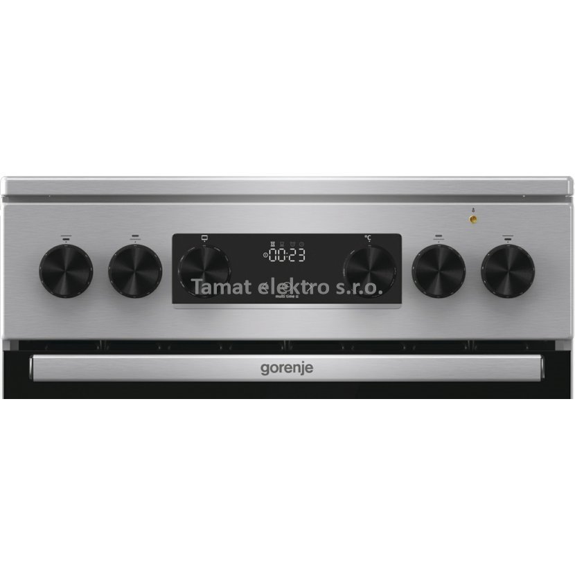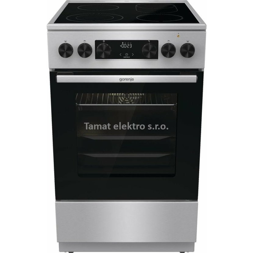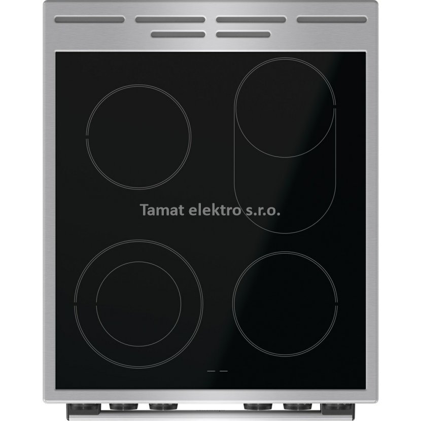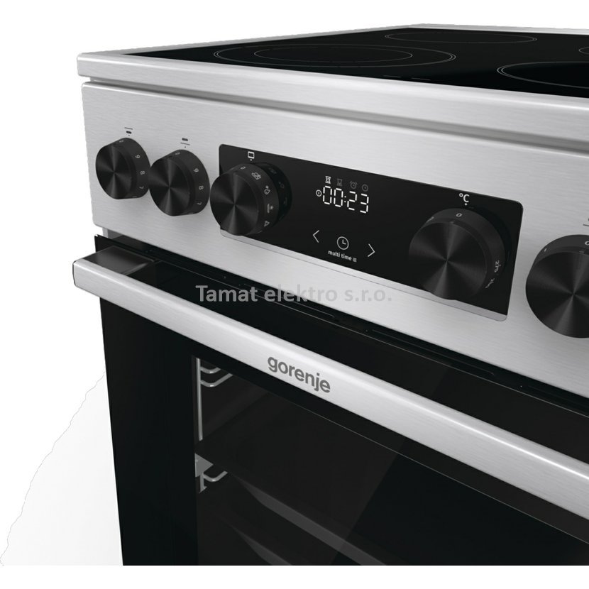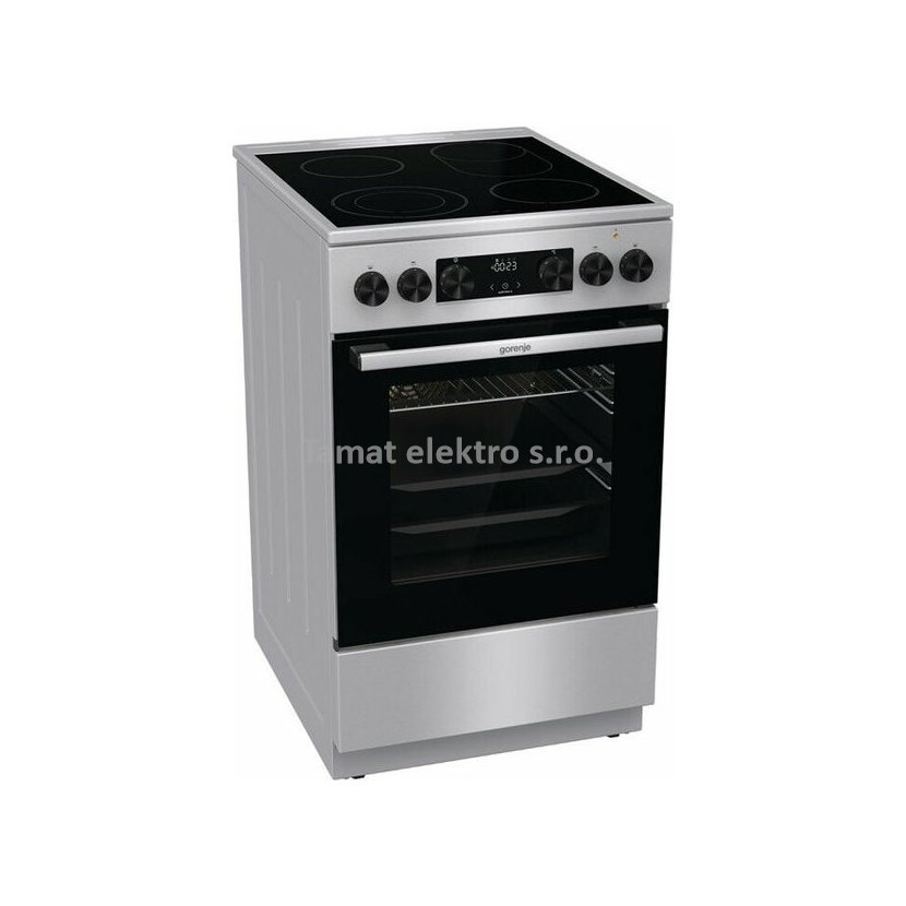 Elektrický sporák v šedé barvě se sklokeramickou varnou deskou v energetické třídě A a troubou o objemu 70 l. Pravý horký vzduch - kruhové topné těleso na ventilátoru, vnitřní materiál…