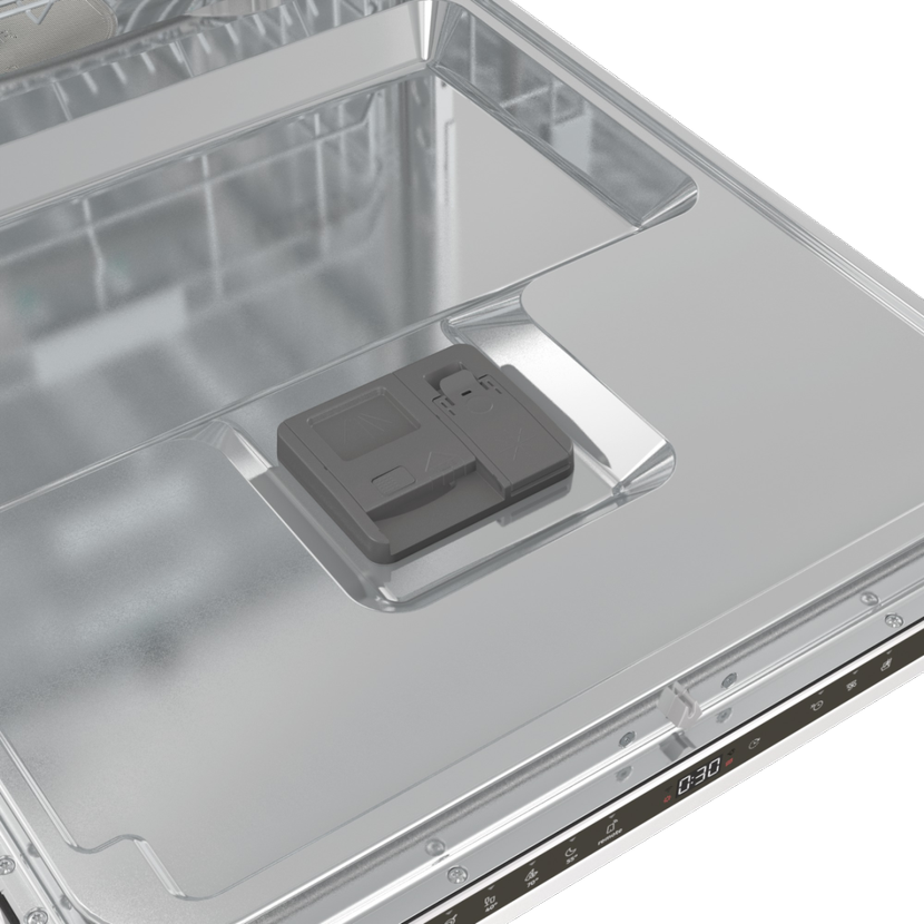 Chytrá plně integrovaná myčka nádobí s invertorovým motorem PowerDrive dokáže umýt 16 jídelních souprav na jednu náplň. Vnitřní LED osvětlení. Na výběr je 7 programů. MultiClack - výškově nastavitelný koš. Vybavena ochranou Total AquaStop a funkcí TotalDry - automatické otevření dvířek na konci mycího programu. Speedwash - zkrácení délky programu. ExtraHygiene - prodlužuje dobu praní a zvyšuje teplotu o 5 °C. FlexUse - flexibilní nastavení košů. PowerPlusZone - speciální rameno, které je umístěno nad košem na příbory. CleanZone - výkonné a vysoce účinné trysky. Samočistící filtr. Hladina hluku při mytí je 39 dB.