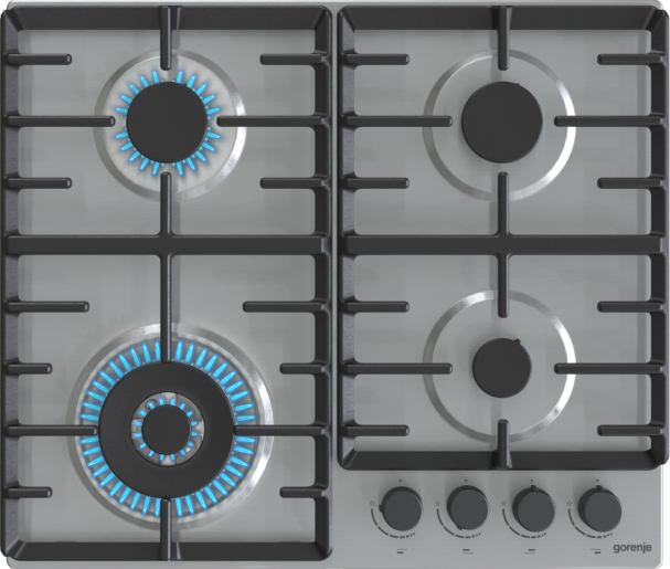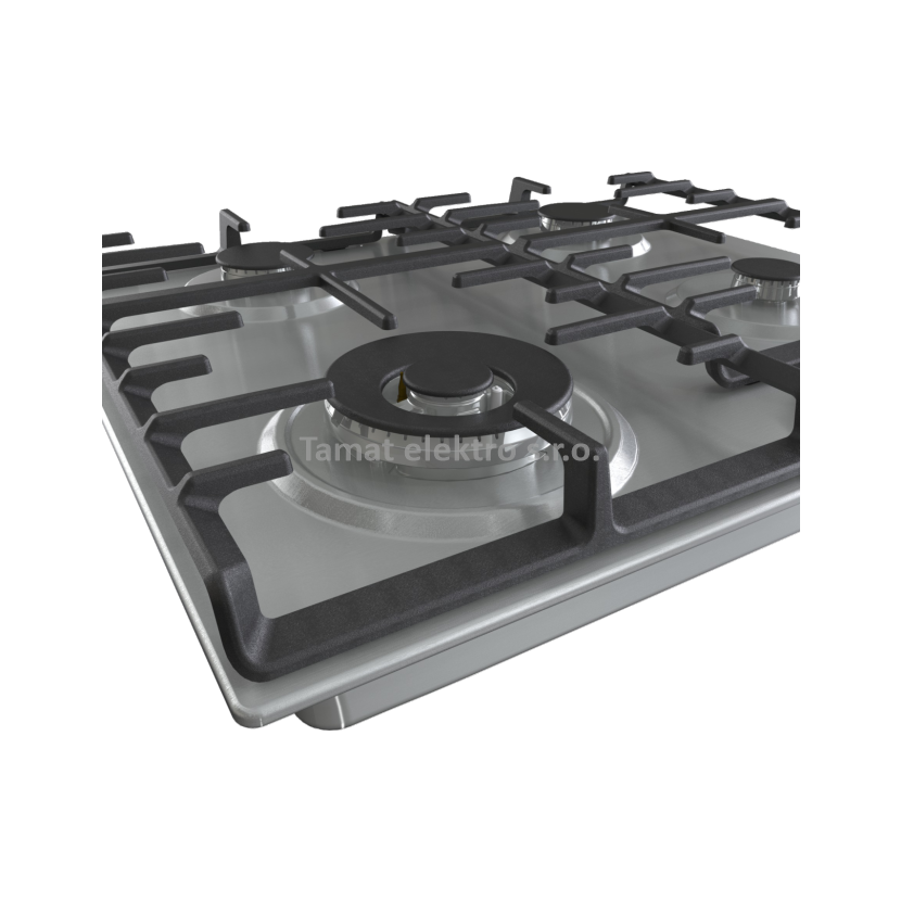 Vestavná plynová deska šíře 60 cm. Masivní a elegantní litinové mřížky pro maximální stabilitu a dlouho životnost. 4 plynové hořáky s bezpečnostní pojistkou proti zhasnutí planeme. Integrované elektrické zapalování v knoflíku, hořák WOK - trojitý hořák se zvýšeným výkonem vaření až 4 kW.