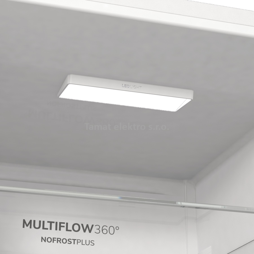 LED osvětlení v chladničce poskytuje vynikající a vysoce efektivní osvětlení. Jeho životnost je třicetkrát delší než u konvenční žárovky, co šetří až desetkrát tolik energie.