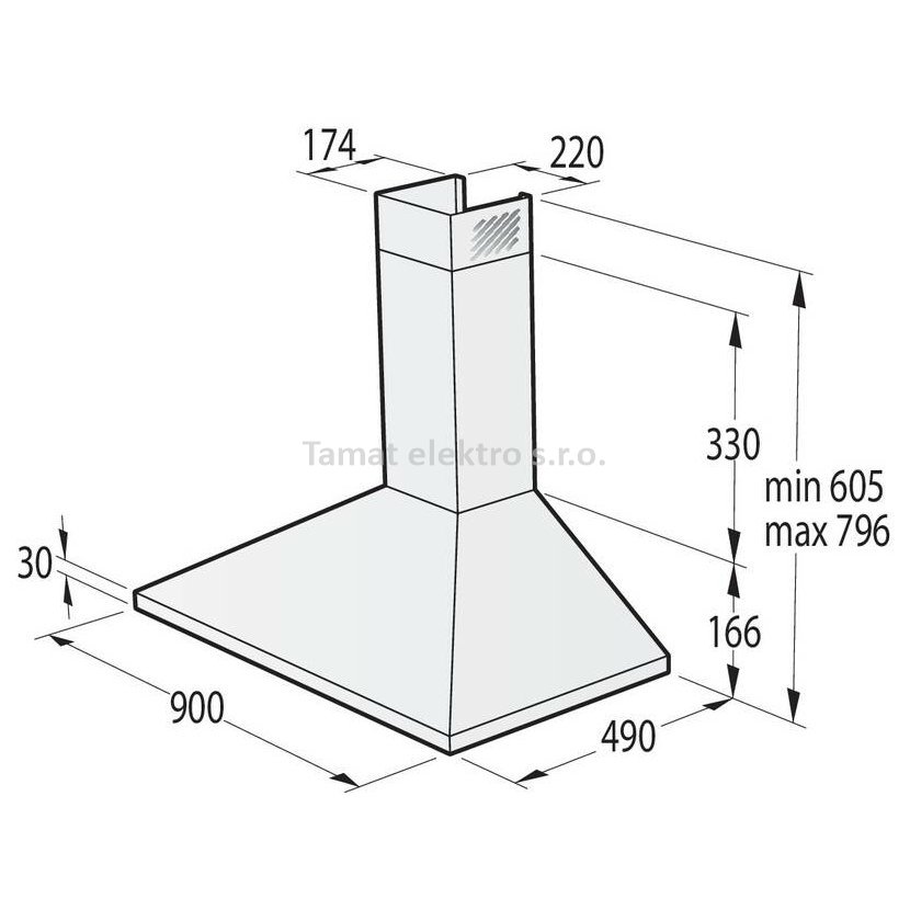 Moderní komínový odsavač par patří mezi mimořádně výkonné a spolehlivé modely. Je vyroben velmi efektně z nerezové oceli, což mu dodává tradiční a originální vzhled. Díky důmyslné konstrukci odsavače se mastnota a pachy z vaší kuchyně odstraní velmi rychle. Stejně důležité je umístění odsavače par nad varnou plochou. Podle norem by měl být umístěn nejméně 55 cm nad elektrickou varnou deskou a 65 cm nad plynovou varnou deskou. Je vhodný pro montáž nad varnou zónu a má šířku 90 cm. Odsavač je vybaven hliníkovým filtrem s polyuretanovou pěnou a zpětnou klapkou o průměru 150 mm.
