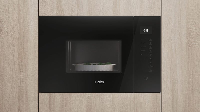 Vestavná kombinovaná mikrovlnná trouba Haier Series 2 HWO38MG2IHXBD s grilem. Mikrovlnný výkon 900W, výkon grilu 1000W, dotykové ovládání, otevírání vyklápěním, vnitřní objem 34l, černá…