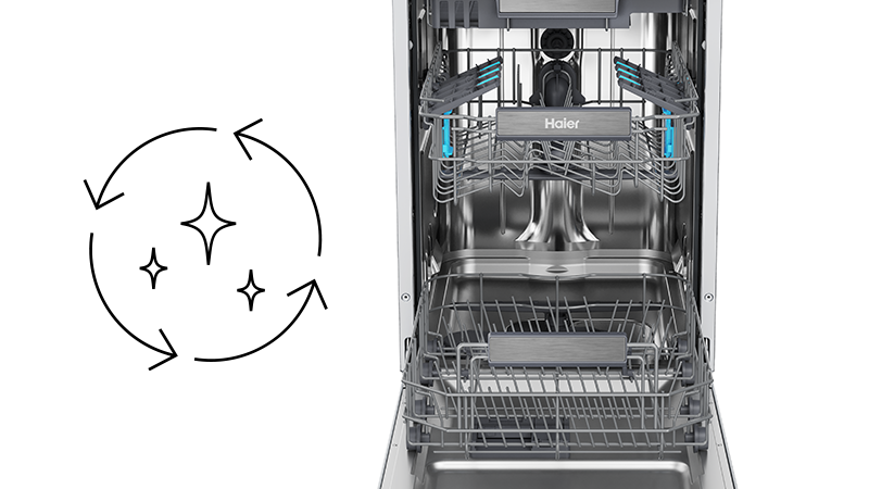 Myčka nádobí Haier je navržena tak, aby poskytovala maximální bezpečnost a spolehlivost. Myčka je vybavena pokročilým bezpečnostním mechanismem proti přetečení a je vybavena ventilem pod spotřebičem, který zastaví průtok vody, pokud překročí normální úroveň, a zajistí tak klid i v případě poruchy.