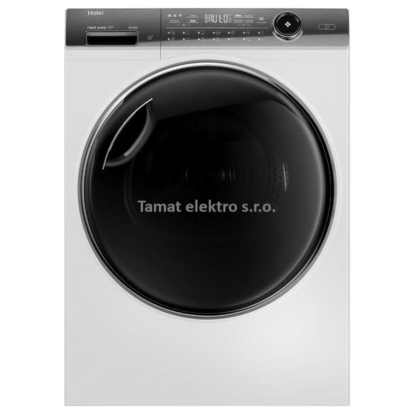Bubnová sušička Haier I-Pro Series 7, Energetická třída E. Vnitřní náplň 10 Kg prádla. Technologie tepelného čerpadla pro úsporný provoz, trojitý filtr. Funkce Hygienic - zbaví vaše vaše prádlo více než 99 % bakterií. Program I-Refresh osvěží vaše prádlo díky teplému vlhkému vzduchu, set pro připojení odtoku vody na kanalizaci. Držák na sušení bot je součástí výbavy sušičky. Připojení přes Wi-Fi - sušičku je možno ovládat přes mobilní telefon pomocí aplikace hOn. Nový budem Pilow drum - velmi šetrný díky polštářovému povrchu. Vnitřní osvětlení bubnu sušičky