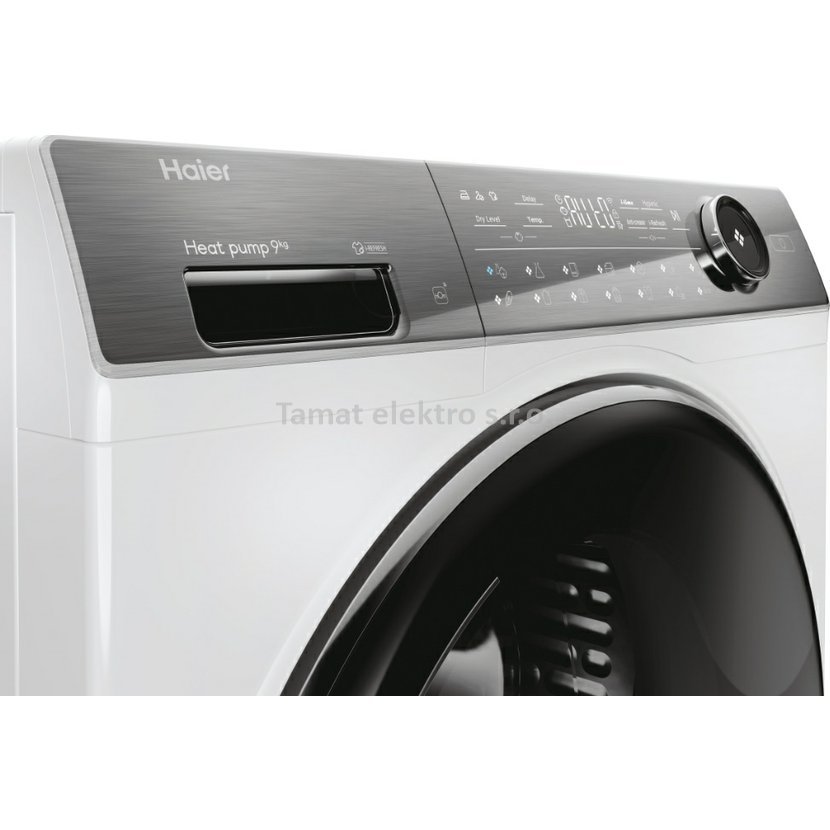 Bubnová sušička Haier I-Pro Series 3 ve velmi úsporném provedení - Energetická třída C. Vnitřní náplň 9 Kg prádla. Technologie tepelného čerpadla pro úsporný provoz, trojitý…