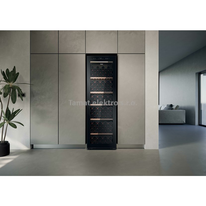 Volně stojící vinotéka z modelové řady Haier Winery 5 s náplní na 205 lahví vína. WiFi - vinotéku lze ovládat také přes mobilní telefon pomocí aplikace hOn. Skleněná dvířka s precizní UV ochranou, velmi tichá chod - hlučnost pouze 37 dB. Police z certifikovaného FSC bukového dřeva, přehledný digitální displej. Antivibrační kompresor, zámek dveří, 3D LED osvětlení. Alarm otevřených dveří, jedna teplotní zóna. Invertorový motor s prodlouženou zárukou na 20 let