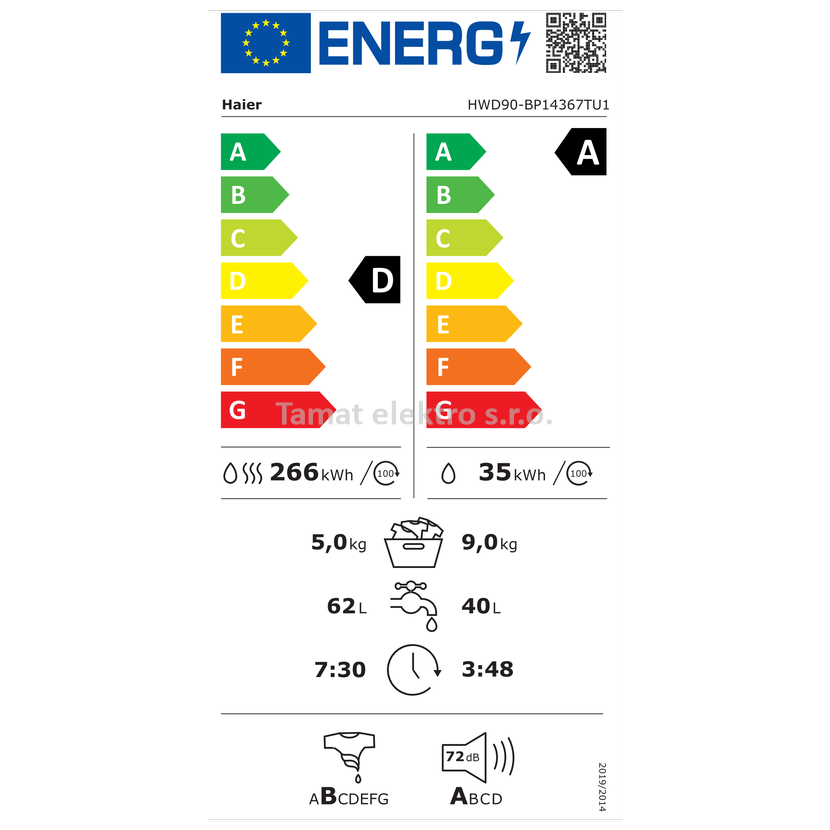 Volně stojící pračka se sušičkou Haier X SERIES 7 v Energetické třídě praní A -35%. Kapacita praní 9 Kg/6 Kg sušení. Odstřeďování 1400 ot/min., 14 programů, velký dotykový displej. Wifi…