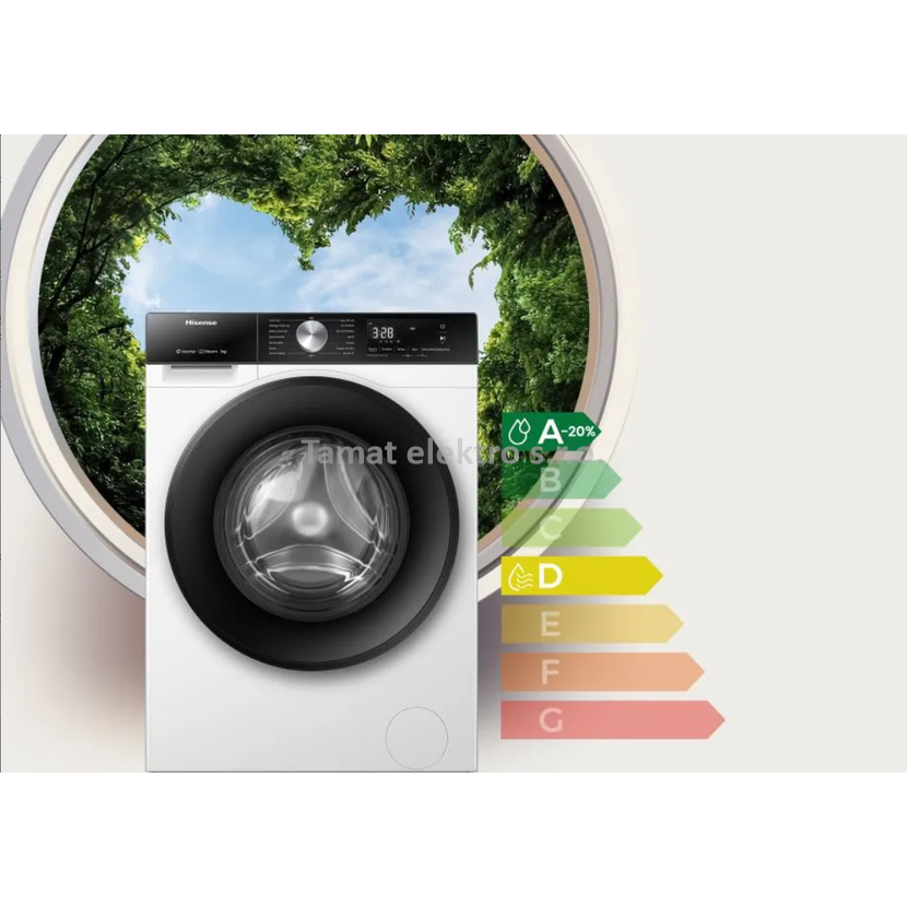 Pračka je vybavena invertorovým motorem BLDC, který lépe tlumí zvuky praní a jehož emisní úroveň hluku je skupina A. Ve srovnání s tradičním DC motorem pomáhá odolný invertor Hisense ušetřit více energie a snížit účty za elektřinu.