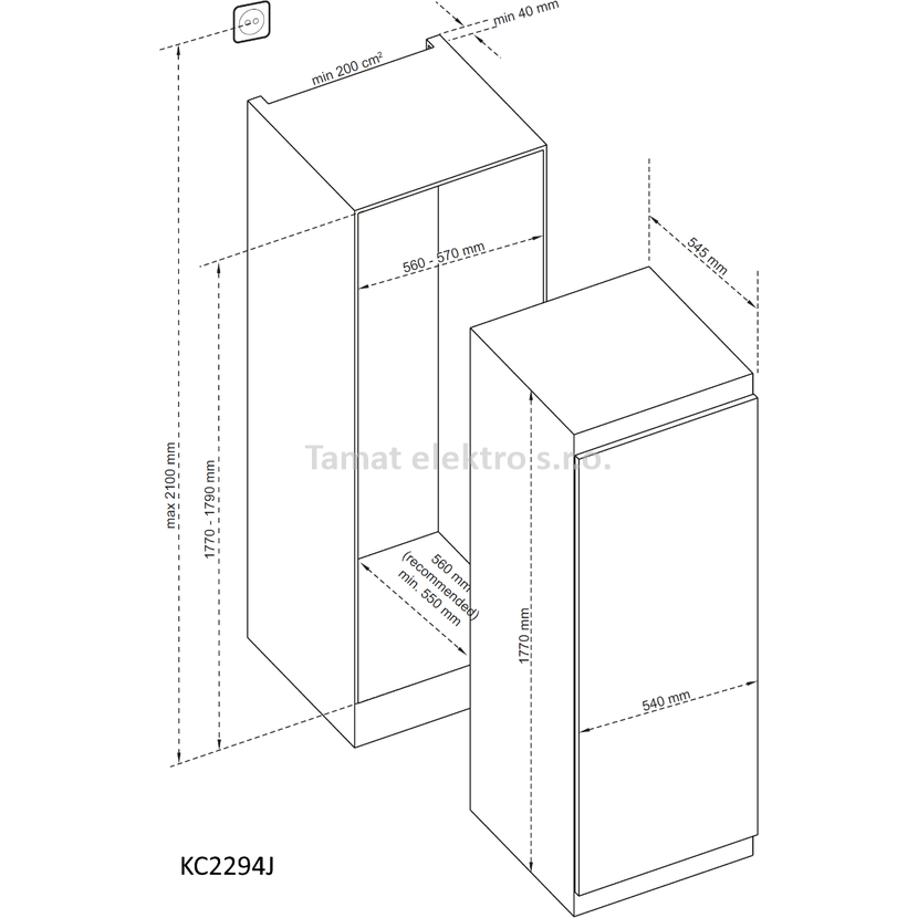 Chladnička Kluge KC2294J je navržena s ohledem na maximální flexibilitu. Možnost změny směru otevírání dveří umožňuje přizpůsobit chladničku vašim potřebám a prostoru v kuchyni. Elektronický termostat a intuitivní ovládání s LED ukazateli umožňují přesné nastavení teploty, což zaručuje optimální podmínky pro uchovávání vašich potravin. Lišty pro vestavbu zajišťují snadnou integraci do vaší kuchyňské linky.