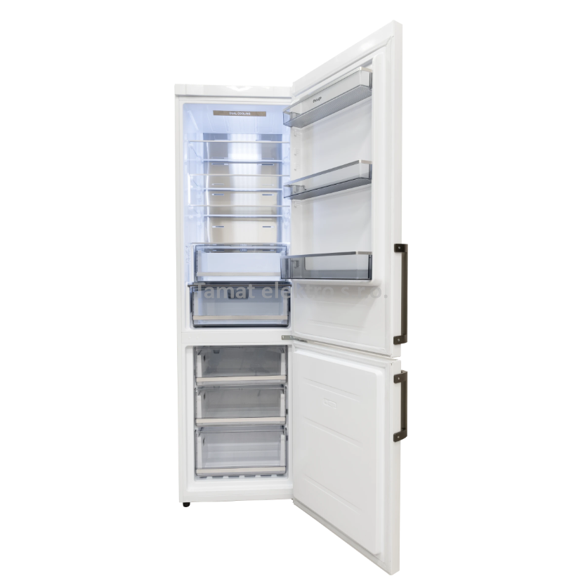 Kombinovaná chladnička s mrazákem dole v bílém provedení. Celkový objem 361 litrů (255/106) výška 200cm, energetická třída C. Technologie NoFrostPlus - jeden z nejlepších chladicích…
