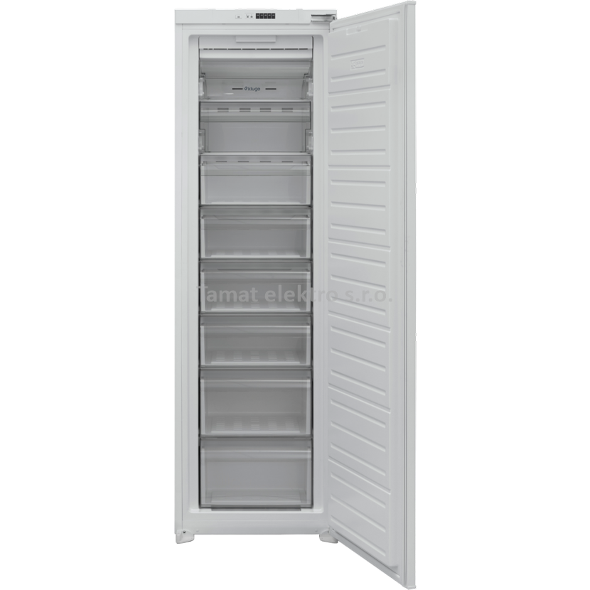 Mraznička nabízí chytré rozdělení vnitřního prostoru: 6 šuplíků a 2 přihrádky s výklopným čelem. To vám umožňuje snadno uspořádat a přistupovat k vašim potravinám. Vnitřní LED osvětlení zajistí, že vždy rychle a snadno najdete to, co hledáte, i při slabém osvětlení.