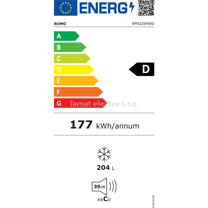 Romo RFN3204WD nabízí čtyři objemné zásuvky a dvě posuvné přihrádky, které poskytují dostatek místa pro organizaci potravin. Možnost změny směru otevírání dveří a kompaktní šířka 54,5 cm umožňují snadné přizpůsobení mrazničky různým prostorovým podmínkám. S energetickou třídou D a roční spotřebou 177 kWh je mraznička nejen výkonná, ale také úsporná.
